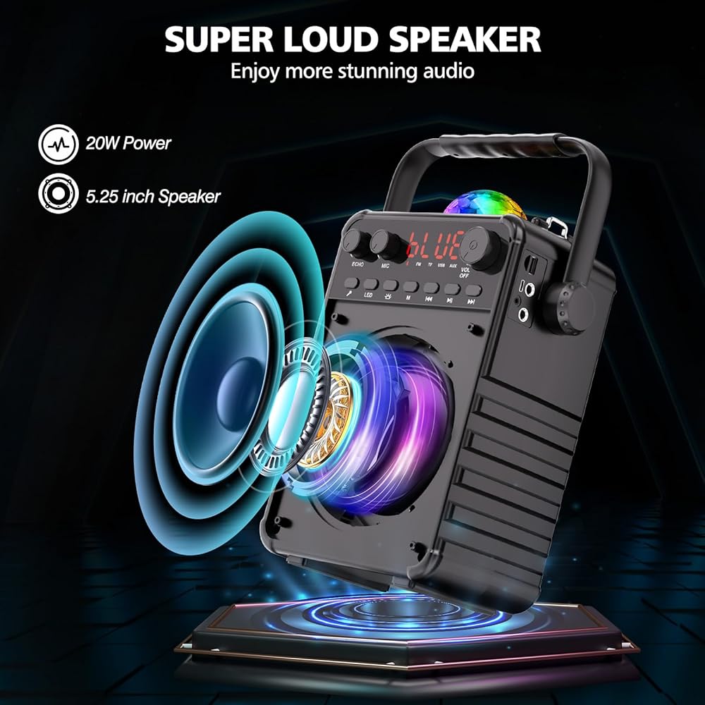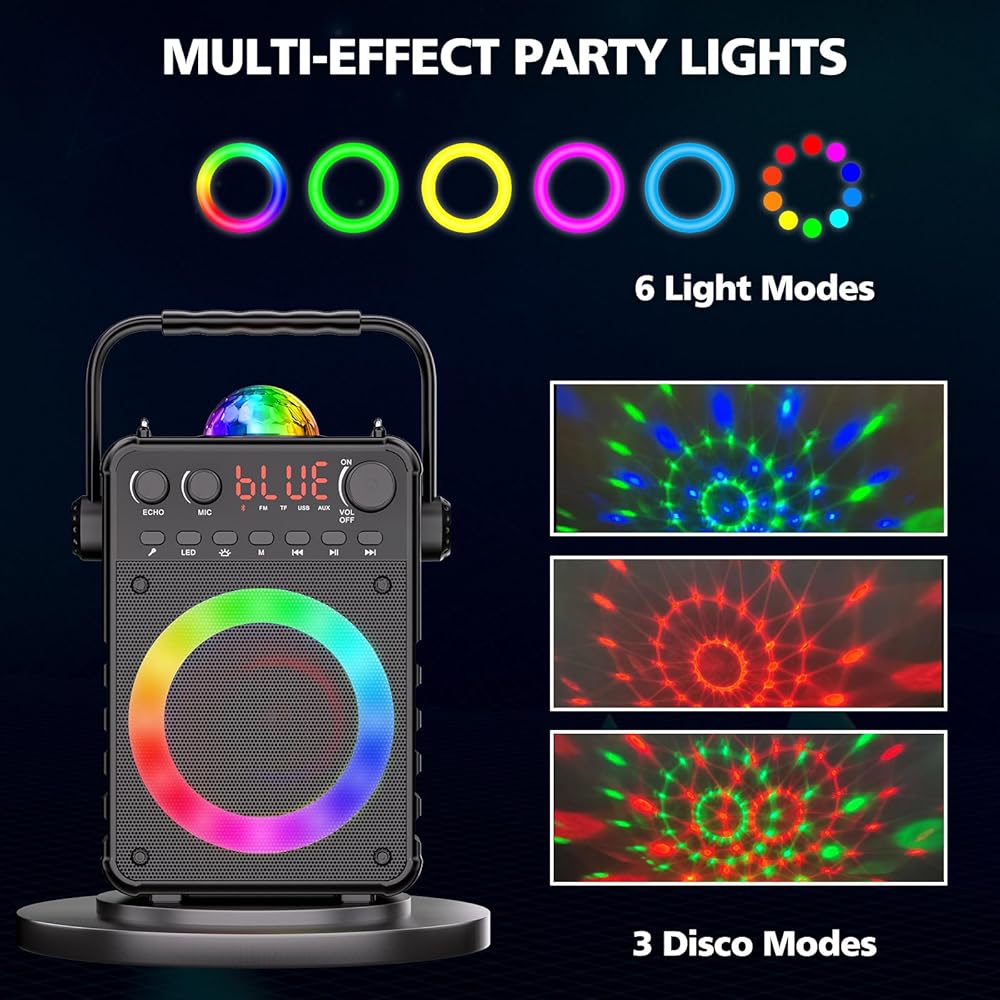 ♬【Larger Projection Lights】The karaoke machine with 2.9" diameter Disco light, you can switch 3 different dynamic projection effects, create a wonderful and romantic atmosphere. Perfect for home party, Xmas show, or other activities.
