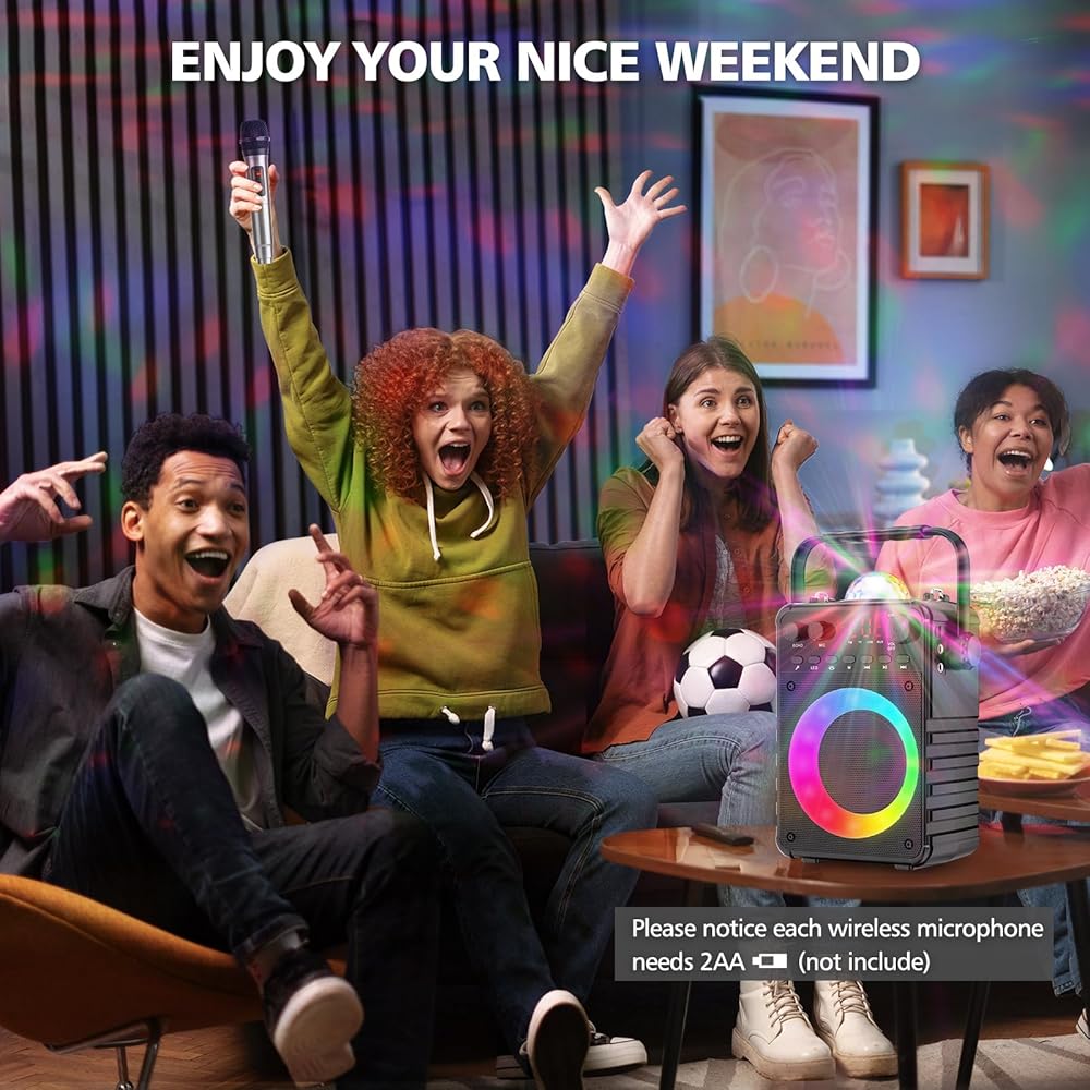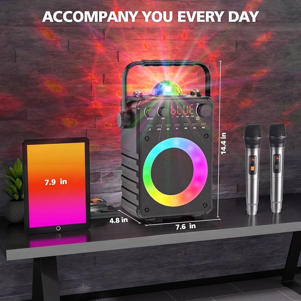 Karaoke Machine, Portable Bluetooth Karaoke Speaker with Disco Projection Lights for Kids Adults, Singing Machine with Two Wireless Microphone, Birthday Gifts for Girls Boys Home Party