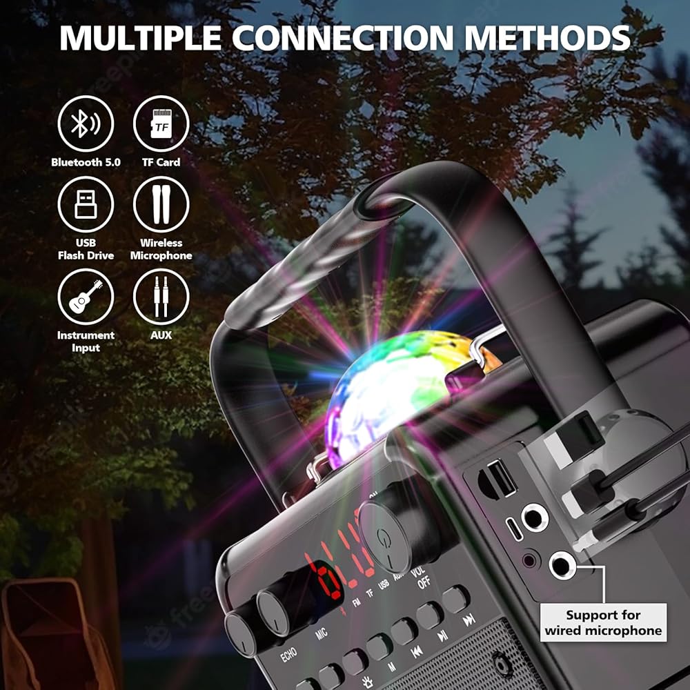 ♬【Newest Karaoke Machine】Surpports multiple connectivity options such as Bluetooth, USB, and AUX, also as a music player, karaoke speaker,PA system, and guitar amplifier. Easy to use and portable, Suitable for adults and child.