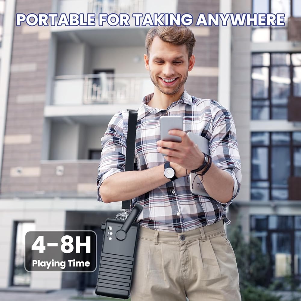 ♬【Longer Playing Time】Portable karaoke system comes with a shoulder strap, convenient to take outdoors, playing time can reach 4-8h after fully charged, the machine also recharge your smartphone via the USB port.