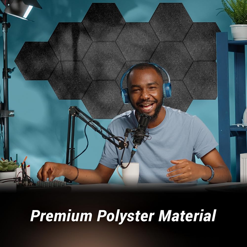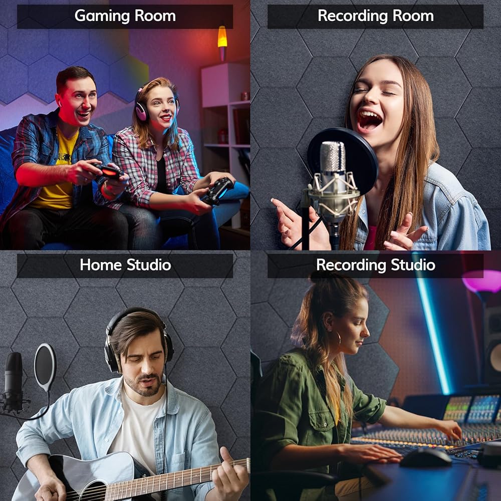 Excellent Acoustic Performance: Indulge in the superior soundproofing experience with our high-density 100% polyester fiber acoustic panels. With 0.9 NRC rating, they effectively reduce noise frequencies by up to 90% and eliminate 97% of indoor echoes. Improve your recording environment and break free from disruptive noise and annoying echoes with our soundproofing panels.