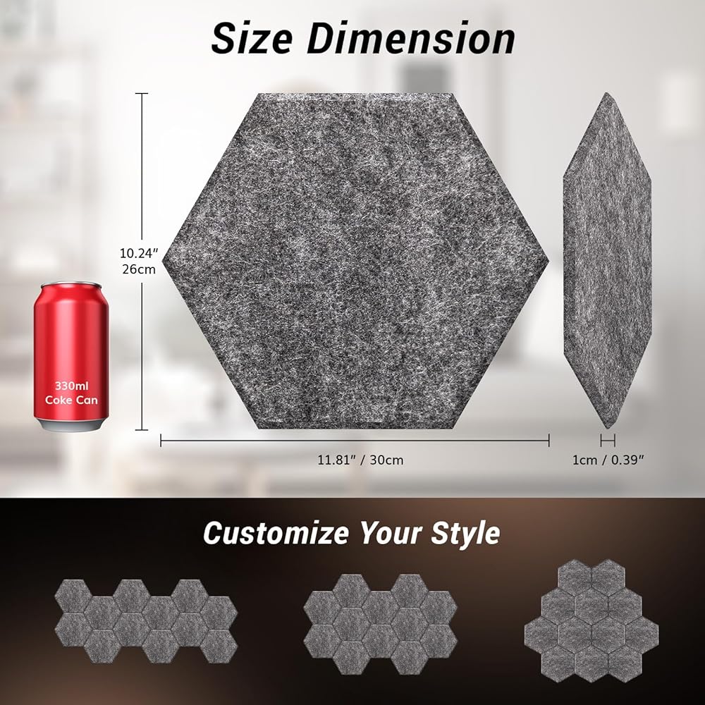 Customize Your Space: The acoustic panels have a smooth and delicate surface with a minimalist and consistent color style. They come in dimensions of 11.6"*11.6"*0.4". You can customize your own stylish space by freely combining them, effectively enhancing the sophistication of interior decor.