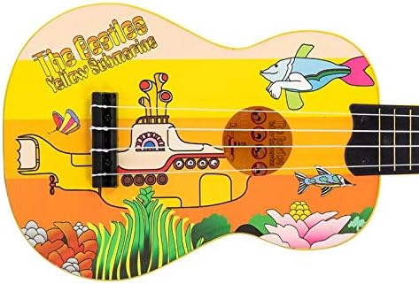 The music-loving inhabitants of Pepper land are under siege by the Blue Meanies, a nasty group of music-hating creatures. The Lord Mayor of Pepper land dispatches sailor Old Fred to Liverpool, England, where he is to recruit the help of the Beatles. The sympathetic Beatles ride a yellow submarine to the occupied Pepper land, where the Blue Meanies have no chance against the Fab Four's groovy tunes. The Yellow Submarine nylon string ukulele makes an ideal beginner's instrument. Featuring wooden construction, this bright and vivid junior ukulele allows budding Beatles fans to learn, play and make happy music to keep the Blue Meanies at bay.