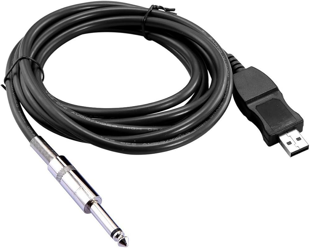 VAlinks USB Guitar Cable, USB Guitar Cord Male to 6.35mm 1/4" Mono Male Electric Guitar Cable, Computer Audio Connector Cord Adapter for Music Instrument Recording Singing (3m/10ft)