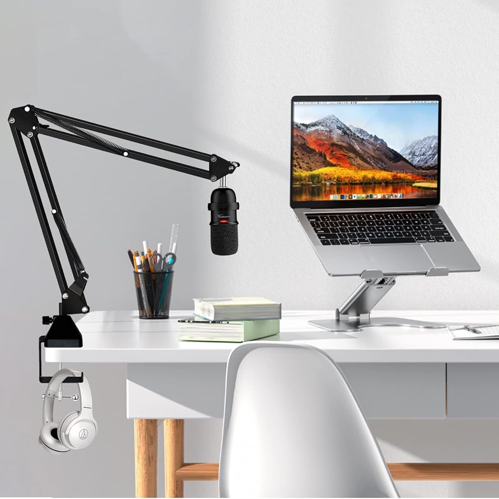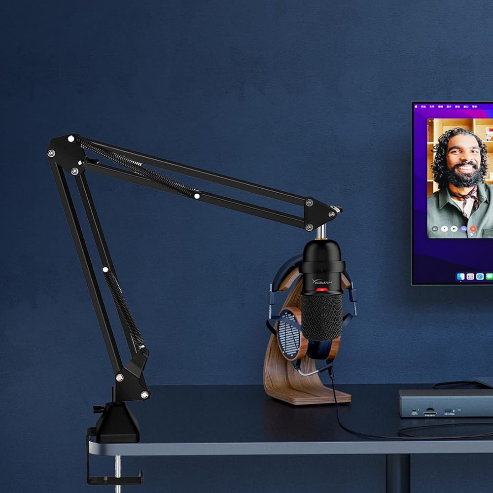 Multiple functions: On the black base of this Hyperx Solocast boom arm, there is also a built-in headphone holder, which can fix the headphones very well, so that you can find your headphones at any time.