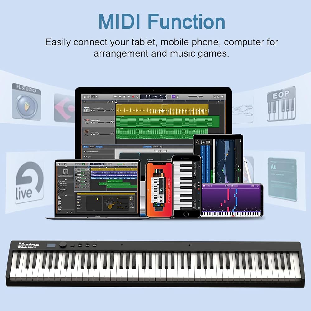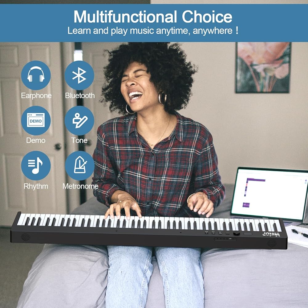 Keyboard Piano Folding Piano with Full Size, Veetop 88 Keys Keyboard Digital Piano Wood Grain Touch Sensitive Keyboard with Bluetooth MIDI, Electric Portable Piano for Beginners and Travel(Black)