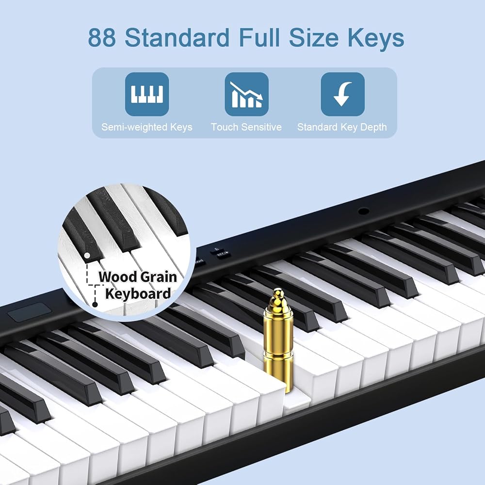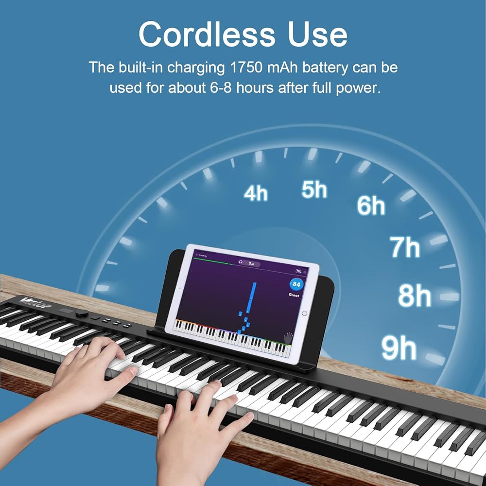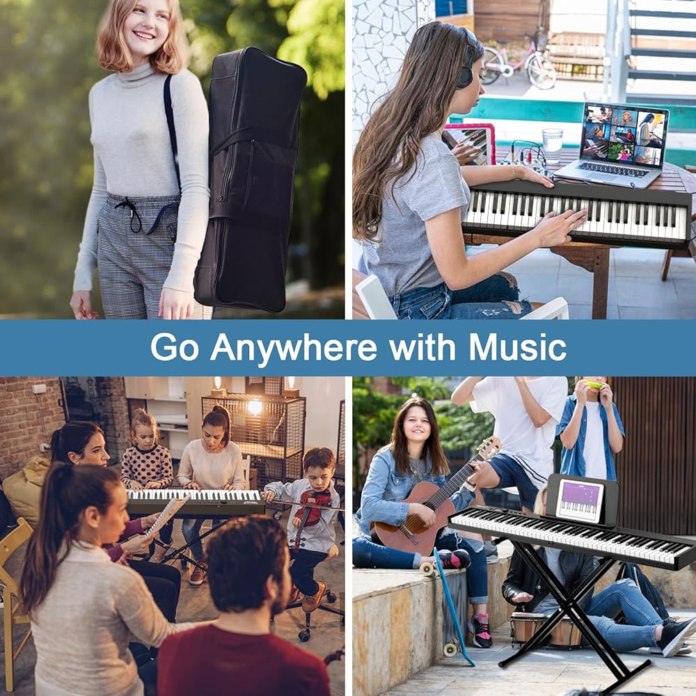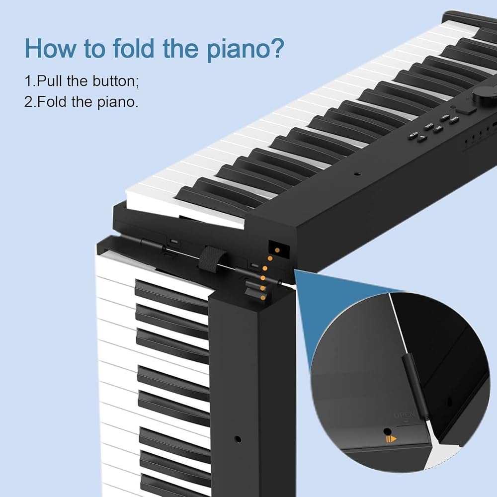 [180° Folding Piano] Creative foldable design allows you to carry the electric piano everywhere. The folding size of the keyboard piano is 24 inches, weighing only 8.93 pounds. You will not take up too much space if you put it at home. The equipped piano bags can not only store the digital piano but also protect it and avoid humidity.