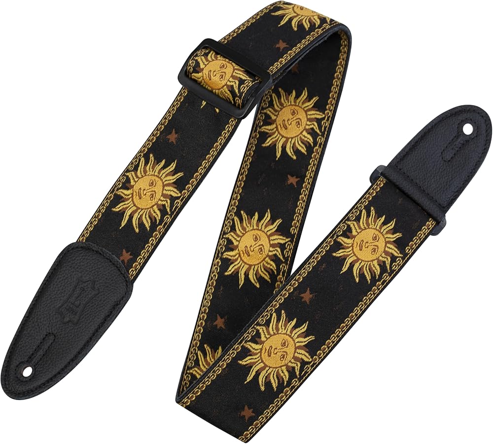 Levy's Leathers 2" Sun Motif Series Jacquard Weave Guitar Strap with Tri-Glide Adjustment, Black (MPJG-SUN-BLK)