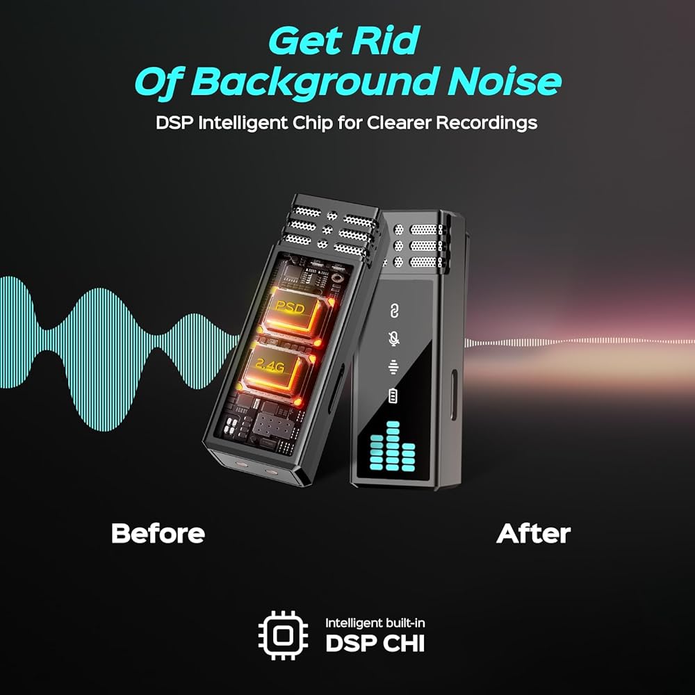 【استقبال صوت متعدد الاتجاهات وجودة صوت واضحة】تم تجهيز الميكروفون اللاسلكي بميزة تقليل الضوضاء المريحة بزر واحد، مما يتيح لك التخلص من ضوضاء الخلفية بضغطة بسيطة. استخدم الميكروفون اللاسلكي للاستمتاع بالتسجيلات فائقة الوضوح حتى في البيئات الصاخبة.