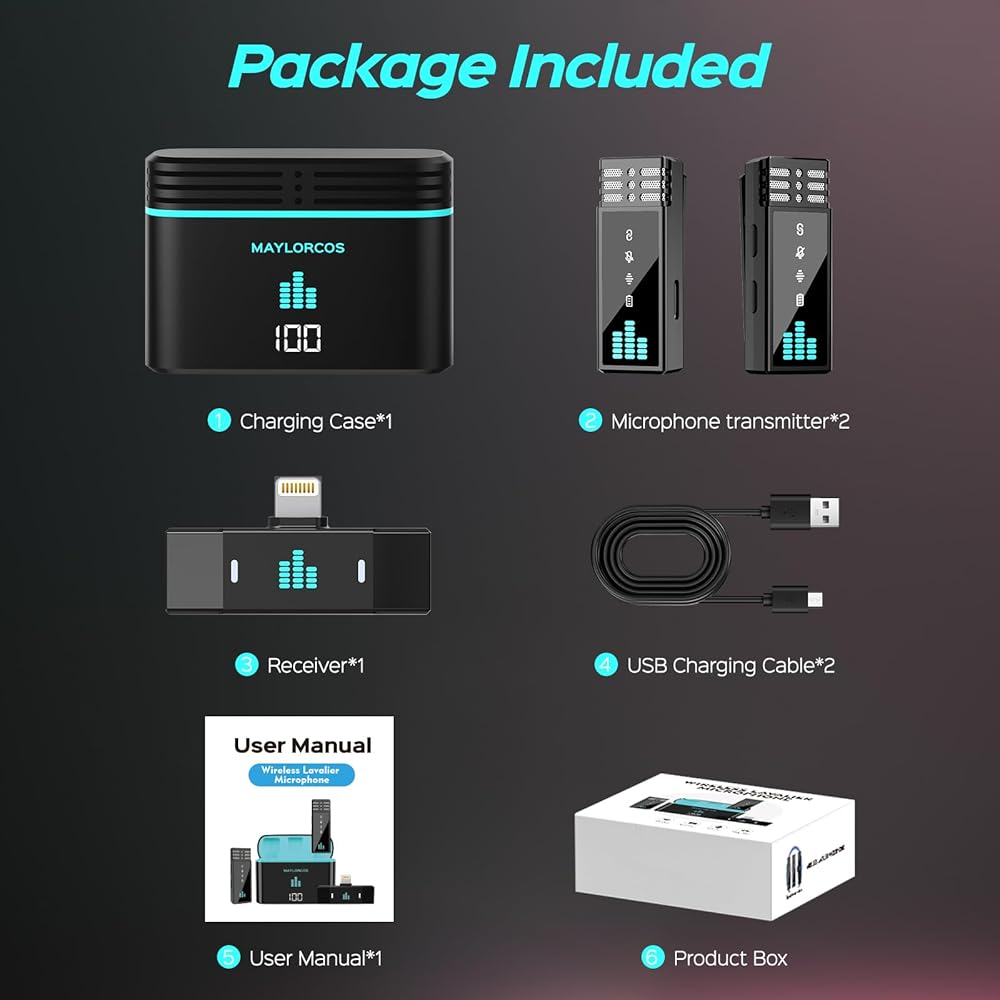 【ما تحصل عليه: 2 TX (2 جهاز إرسال) + 1 RX (1 جهاز استقبال) + علبة شحن + كابل شحن + تعليمات. ضماننا الخالي من القلق لمدة 18 شهرًا وخدمة عملاء ودودة.
