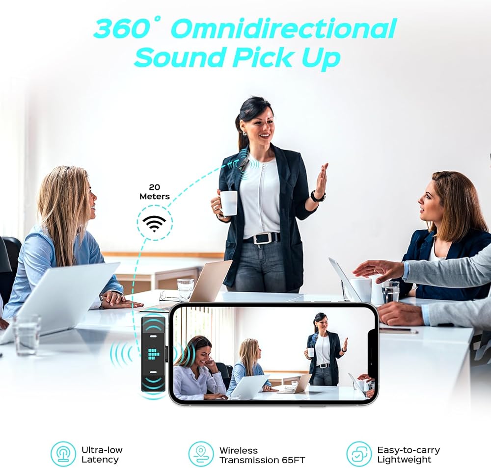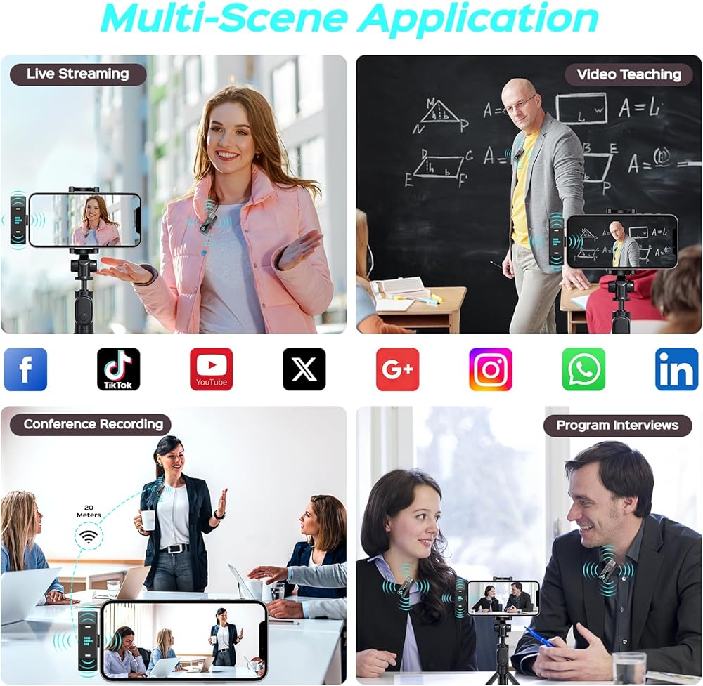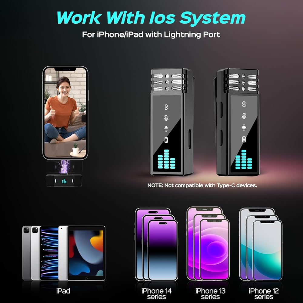 【ميكروفون Lavalier لاسلكي لأجهزة iPhone/iPad】ميكروفون الميكروفون الصغير اللاسلكي متوافق فقط مع iPhone/iPad. غير متوافق مع أجهزة USB-C/الكاميرا/أجهزة أندرويد. ميكروفون الميكروفون اللاسلكي الخاص بنا مناسب لإجراء المقابلات والمؤتمرات عبر الإنترنت والبودكاست ومدونات الفيديو والبث المباشر.