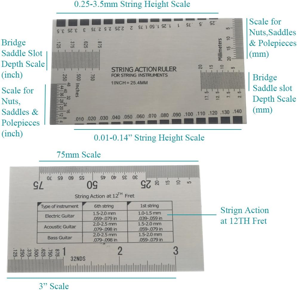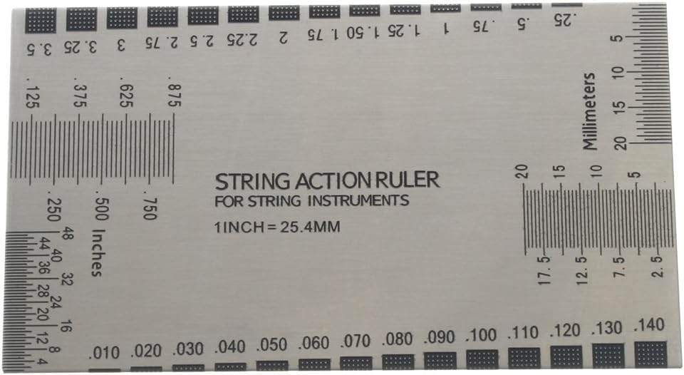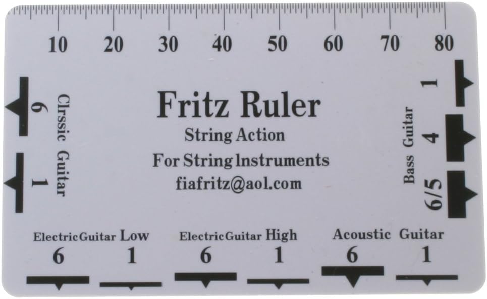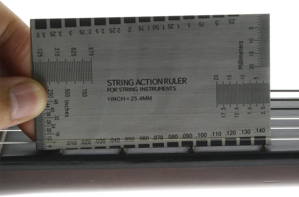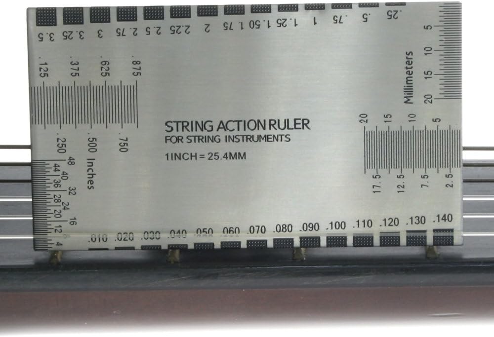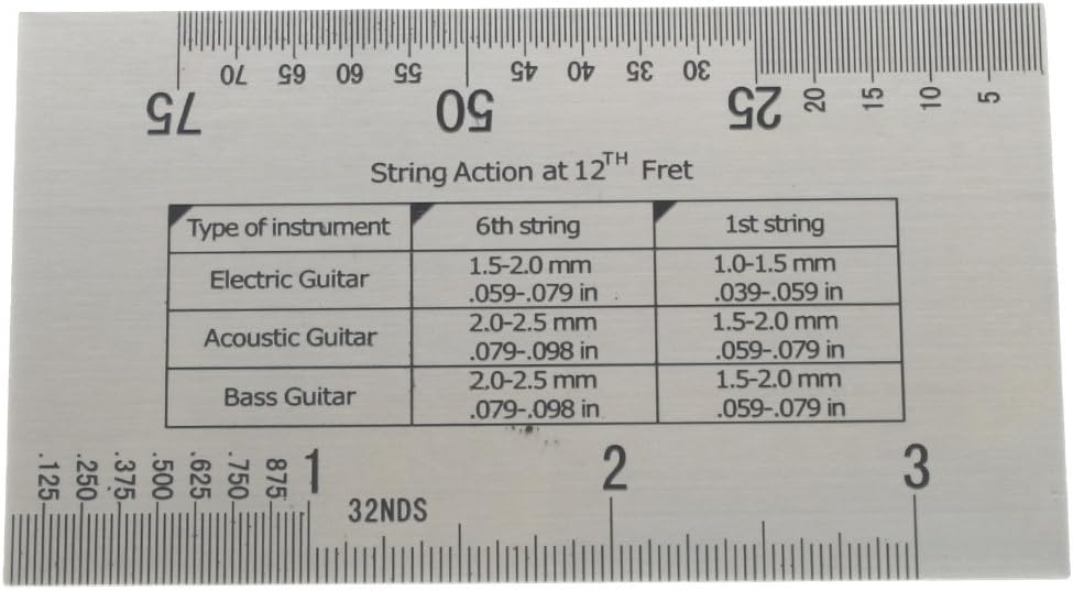 A ruler for measuring string height, frets, nuts, saddle, and other parts of a guitar.
