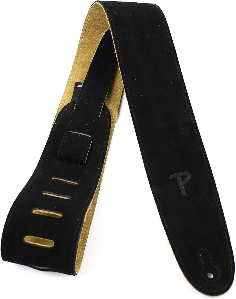 Perris Leathers P20S-202, Black Color, 2”- Inch Wide, Extra Soft Suede Leather Guitar Strap. Adjustable Length from 44.5” to 53” Long fits most adult musicians and guitar players. Adjustable Length ensures your instrument rests exactly where you want it. Cool Design that can be used with most guitar types. Men and women of all ages love this unique and comfortable guitar strap. Available in Extra Wide Size - 3.5” Inch in Select Colors. Made in Canada