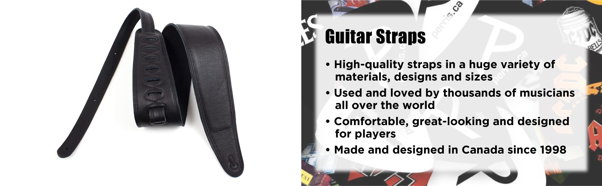 Perri’s Leathers Adjustable Guitar Straps for Kids, Men & Women - Locking Guitar Strap for Acoustic, Bass and Electric Guitars - Adjustable Size - Black