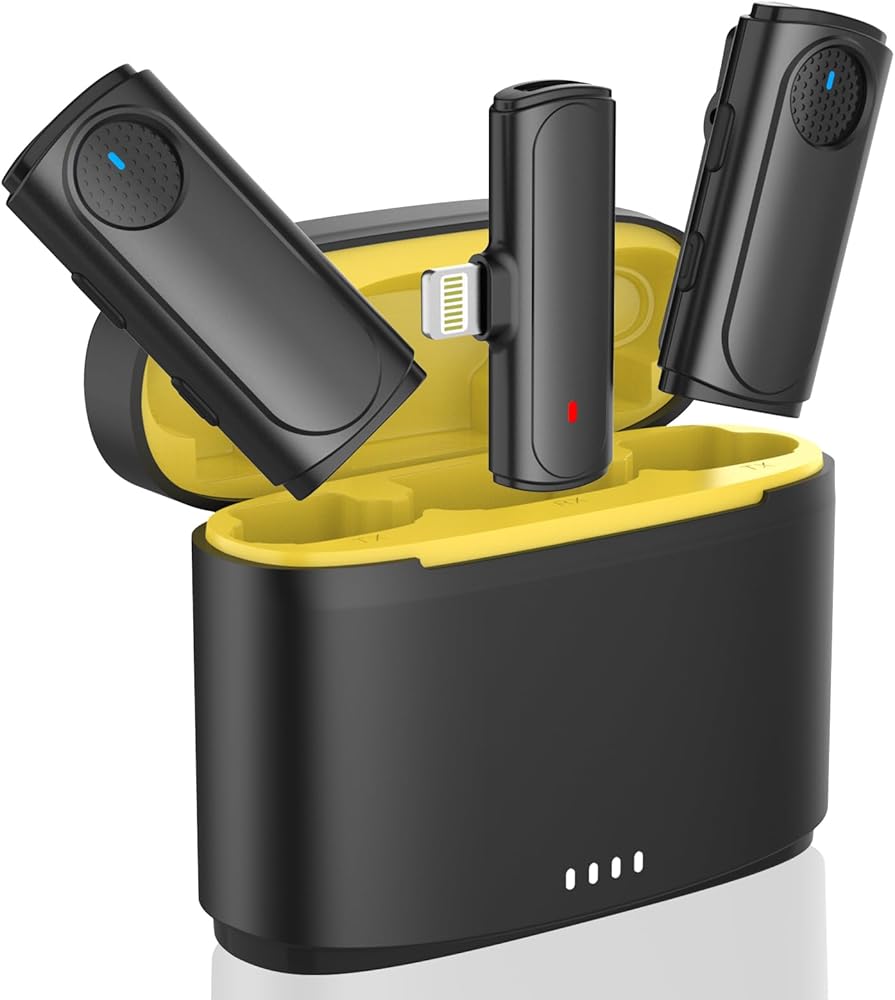 MAYBESTA Wireless Lavalier Microphone for iPhone iPad - Mini Phone Mic with Charging Case for Video Recording - 2 Clip on Lapel Microphones for YouTube Vlogging Interview