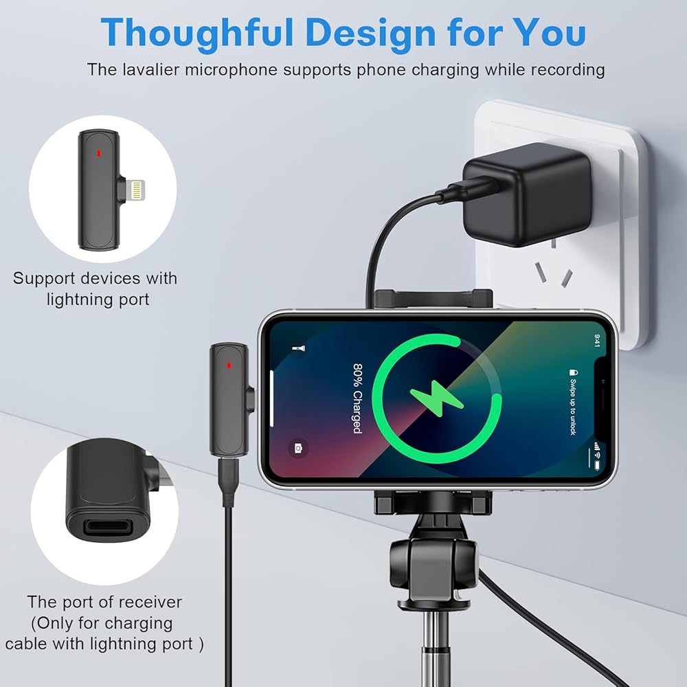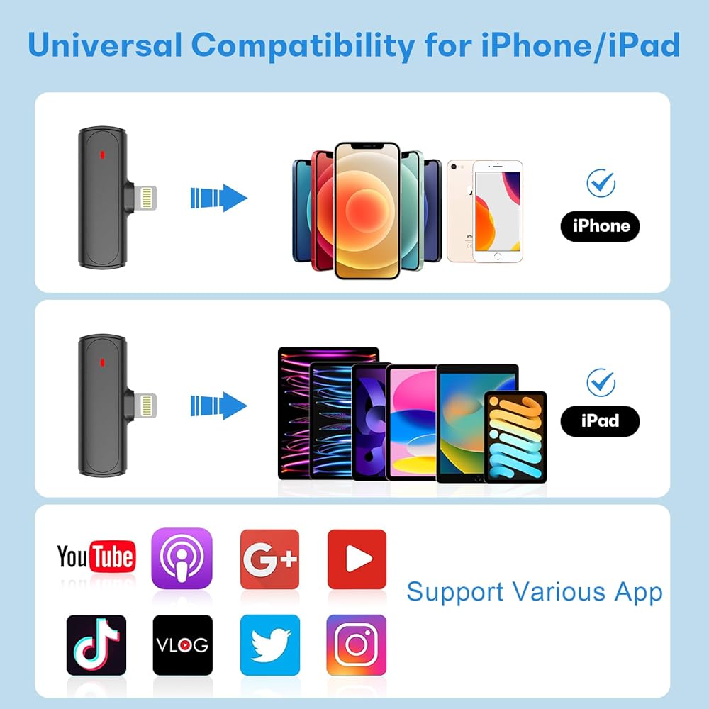 Universal Compatibility: This professional bluetooth microphone is compatible with iOS system. It is designed for iPhone/iPad with lightning port only and widely use on different social media platforms like Youtube, Tiktok for video recording, vlogging, interviewing, filming and livestreaming