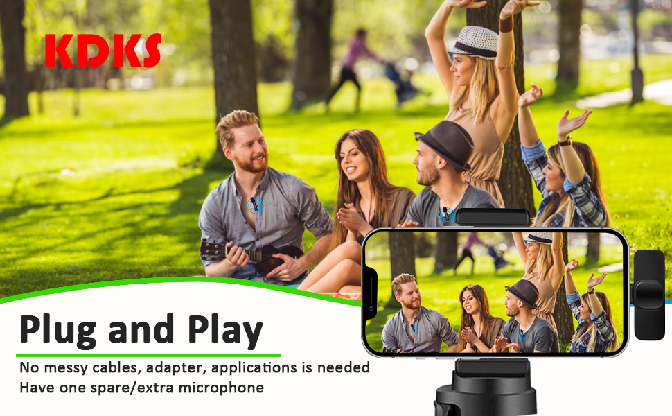 【Real-time auto-sync technology】Our wireless clip-on microphone uses advanced 2.4G signal transmission with super low latency, so the sound picking-up follows the picture in real-time. This allows you to complete dynamic shooting, cell phone recording, and short video production in a variety of large scenes.just plug the receiver into your iPhone/iPad and power on the microphones, they will automatically connect and pick-up sound. Easy for you to pick up sound with YouTube/Facebook Live Streaming, TikTok, Vlog, Blog, Podcast, Zoom, Interview, and other sound picking up.