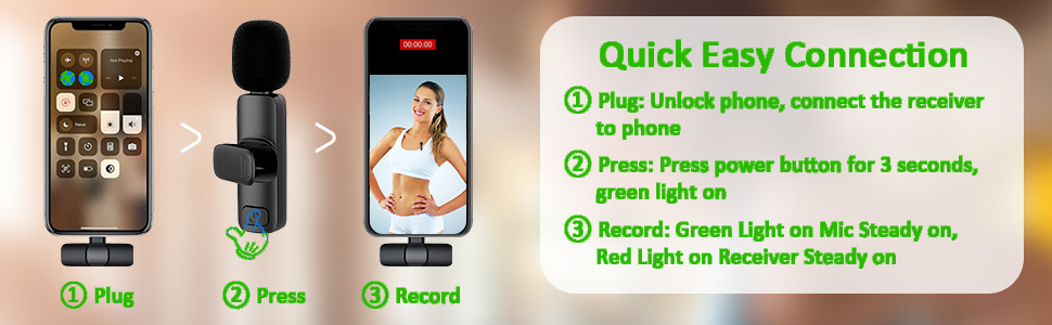 【Wide compatibility】Our upgraded wireless lavalier microphone works with iPhone 7 and above, IOS smartphones, and iPad with lightning connector.Suit for Vlog, Interview, Live streaming, YouTube, TikTok, Podcast, Instagram, Online video tutorial, and Singing recording, etc.(Note: If the microphone is not recognized, please upgrade your phone's IOS version)