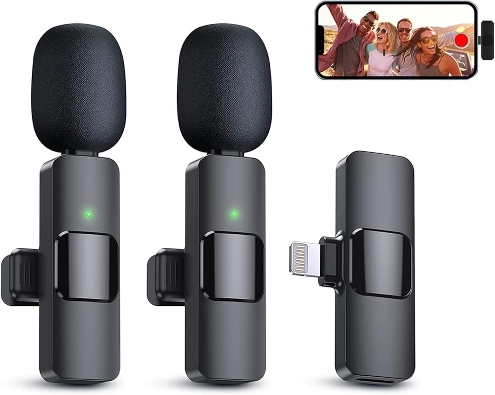 KDKS 2 Pack Wireless Lavalier Microphone for iPhone,Cordless Double Mics Plug and Pick-up,Microphone with Built-in Noise-canceling Chip 8H Working Time for iPhone Video Recording,YouTube,TikTok