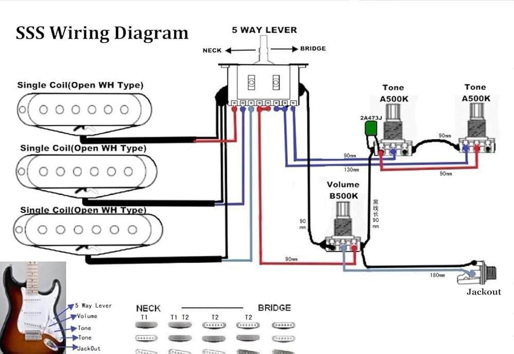 Wiring diagram as the picture seventh shown, this harness is completely prewired. All you need to do is solder your pickups to the switch and ground them to the volume pots. (1 colored wire from 1 pickup to any of the connectors on the neck side of the switch ( depending on where you want it) and the other wire from that pickup gets grounded.)