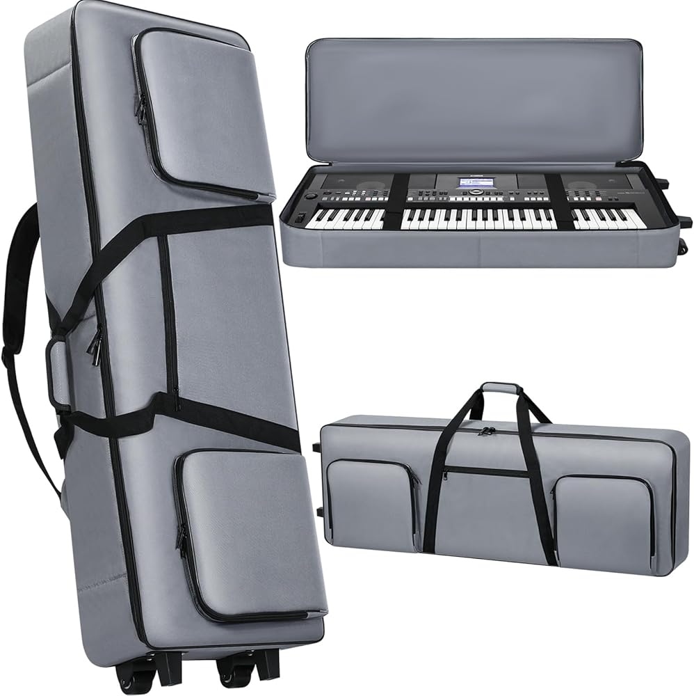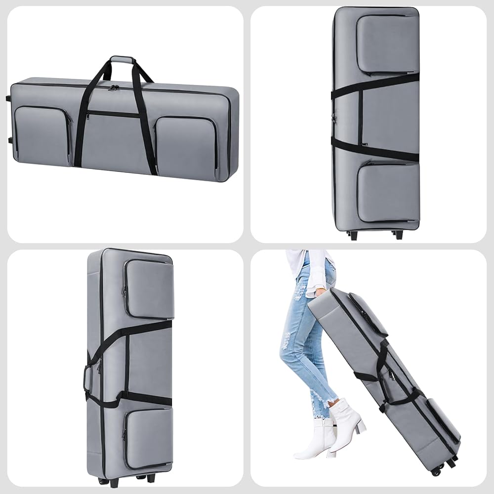 76 key Keyboard Case with Wheels (Interior Size: 50.4"x18.1"x6.3") | 76 Key Keyboard Rolling Bag Padded with Soft Handle & Padded Shoulder Strap | Portable 76 Key Keyboard Case Roller Bag (Gray)