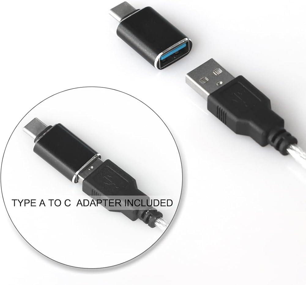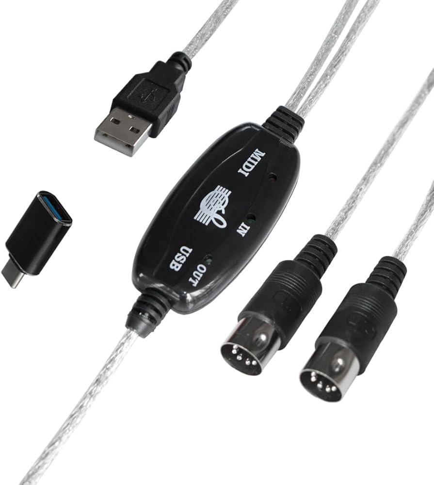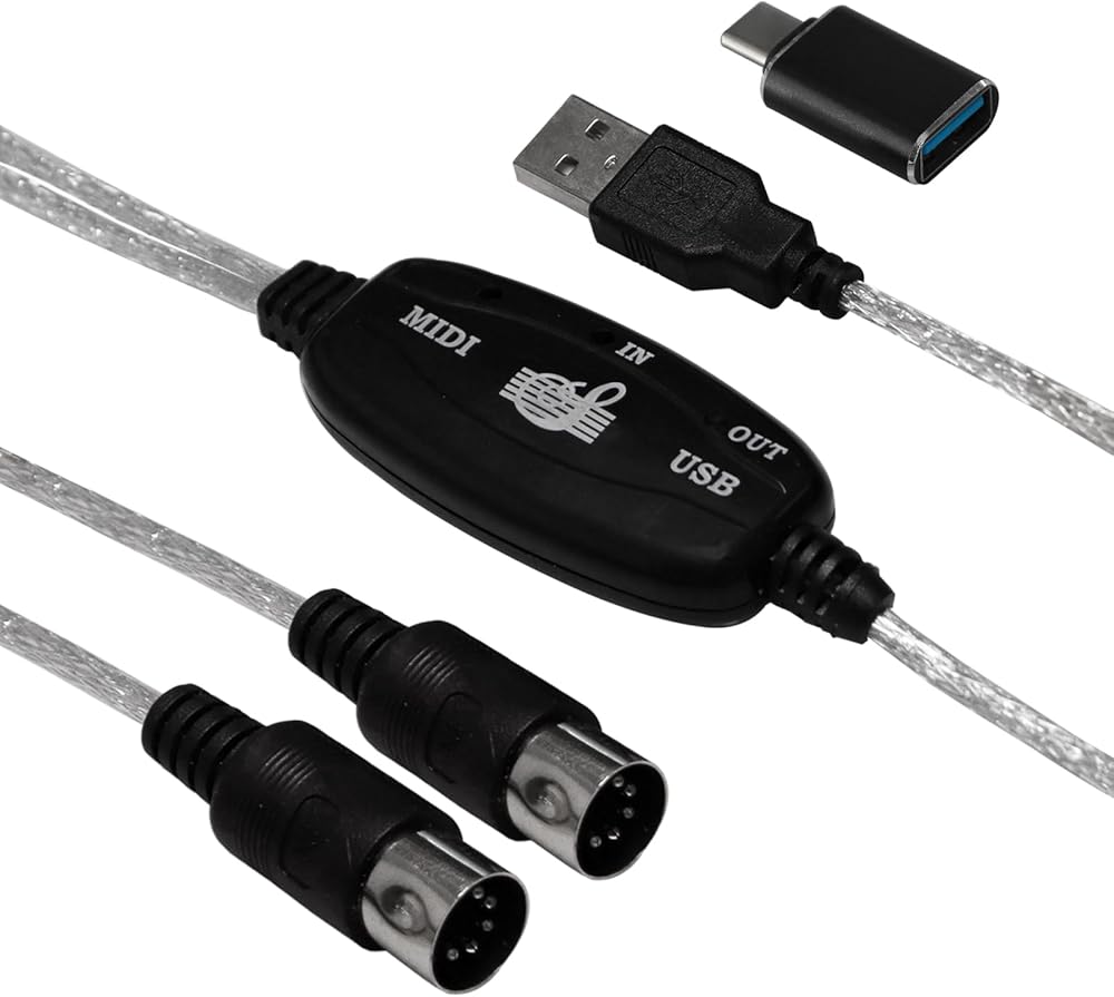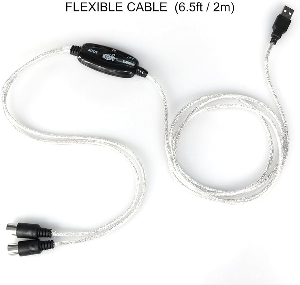 A to C Adapter - Type C to A adapter is included. The total length of this USB to MIDI cable is around 6.5ft (2 meters).