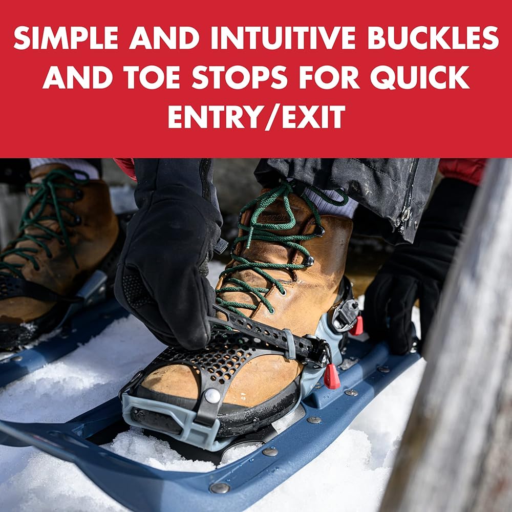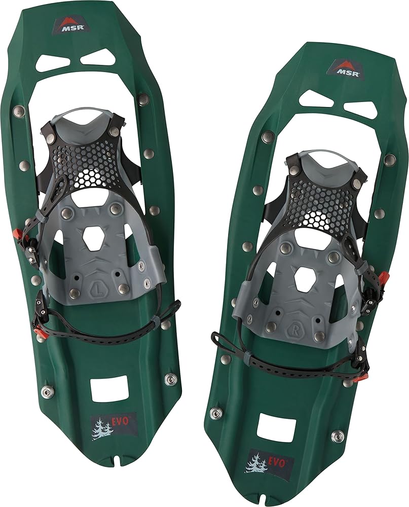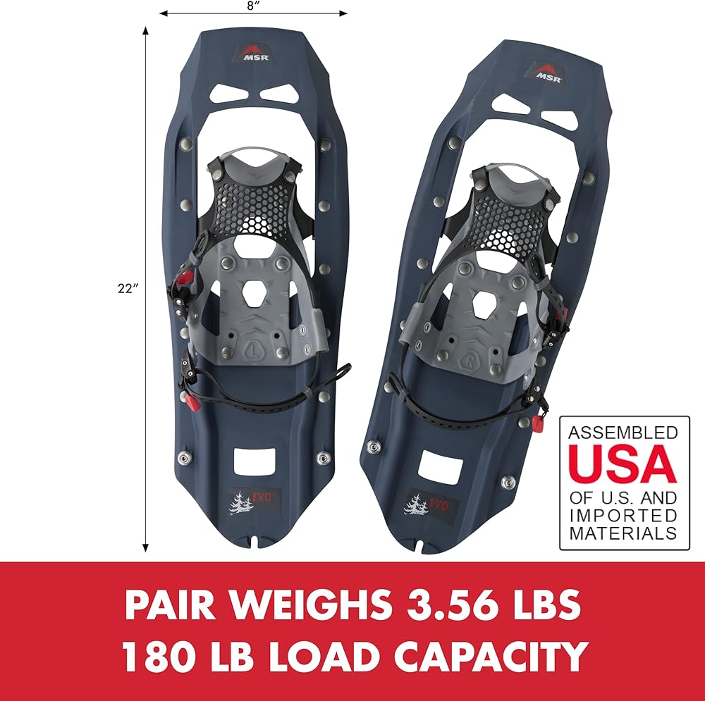 Durable and easy to use, the Evo Trail snowshoes are ready for years of adventures. The UniBody frames and steel traction rails offer the essential grip needed for even modest slopes in less than ideal conditions, while Paraglide bindings are easy to use and incredibly comfortable. The pressure point-free stretch mesh securely hugs your feet and is compatible with nearly any footwear. MSR snowshoes are designed, engineered and made to exacting standards in the USA with the highest quality U.S. and imported materials to perform reliably in winter conditions.