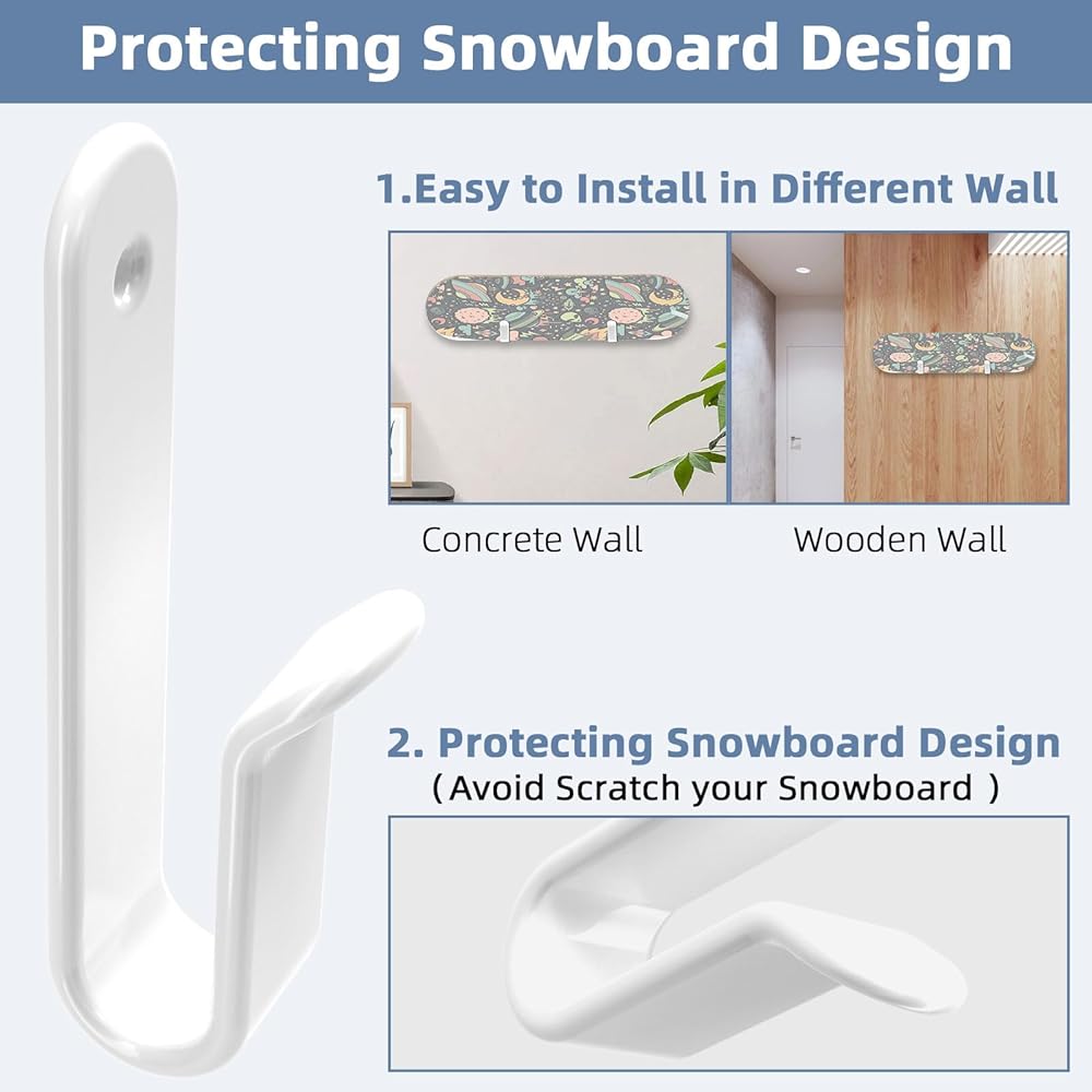 【Function】: Our Snowboard wall mount clip is designed for holding most kinds of snowboards. The clips are made of rubber-dipped body, not worry to scratch your favorite board. The clip's angled mount is easy to remove and put on your snowboard