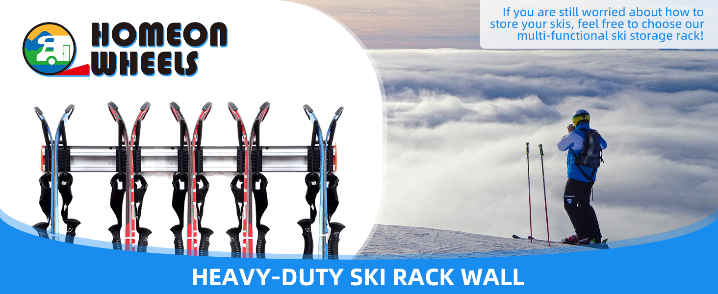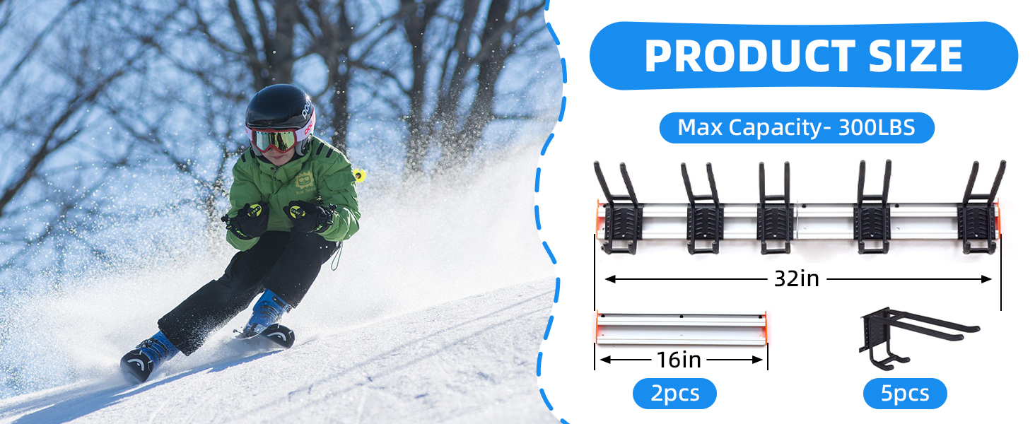 HEAVY-DUTY SKI RACK WALL: This ski storage rack for garage holds up to six pairs of skis weighing 300 pounds in total and features aluminum brackets, ensuring it's rustproof and durable.