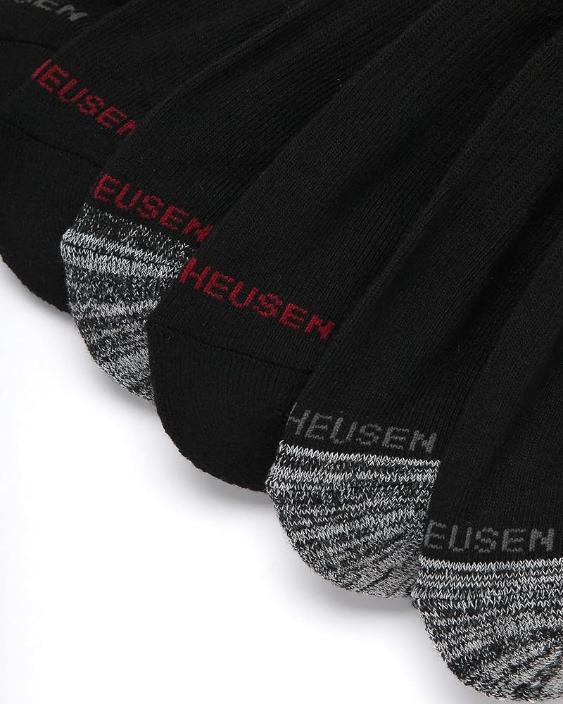 Reinforced Heel and Toe You expect socks to last a long time, Van Heusen offers reinforced heels and toes to extend the life of your socks to prevent holes caused from rubbing in shoes and daily wear and tear.