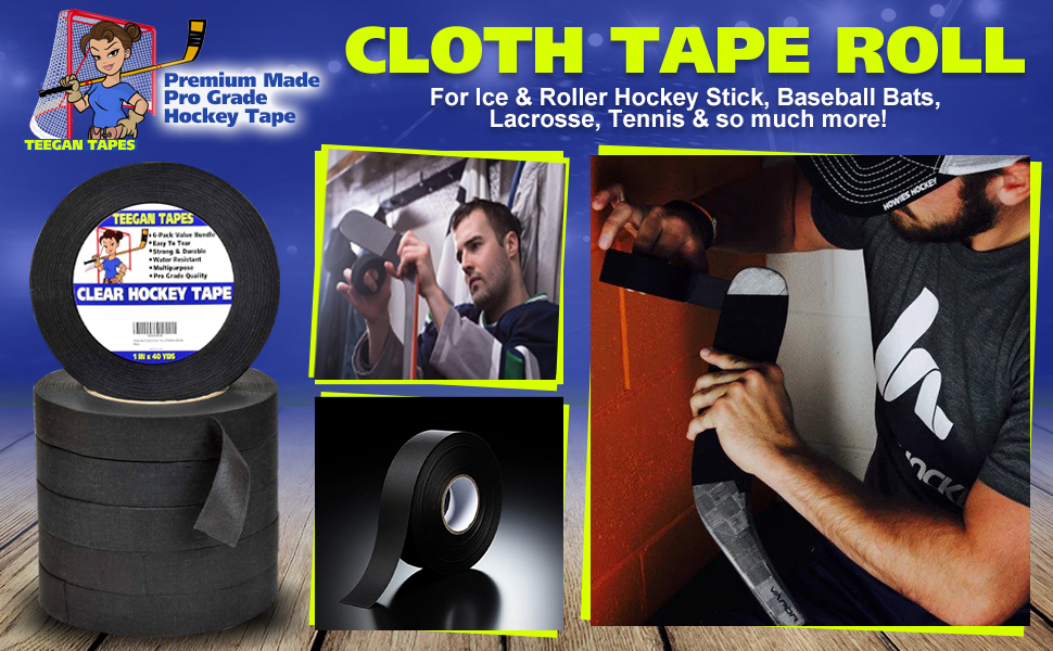 Hockey Tape | Multipurpose Cloth Tape Roll for Ice & Roller Hockey Stick, Blade & Handle Protector | Strong Over Grip for Lacrosse Baseball Bat | Sports Gifts, Accessories, Equipment, Gear