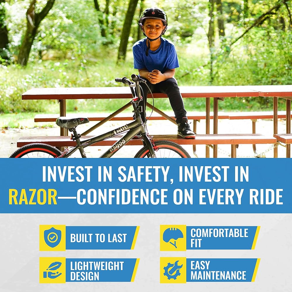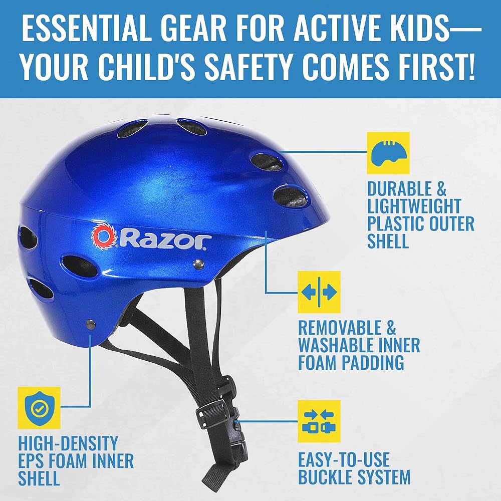 Razor V-17 Youth Multi-Sport Helmet - CPSC Approved Kid’s Helmet with Adjustable Strap - Durable Helmet with Foam Padding for Biking, Skating, and Other Outdoor Sports