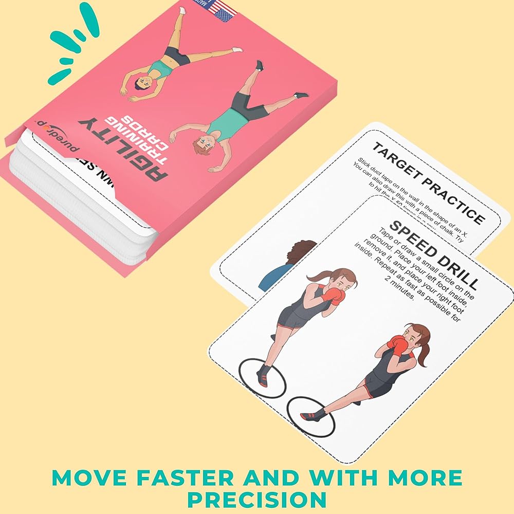 بيور دروب بطاقات مساعدة للتدريب على الحركة والمرونة والتمدد، تدريبات تدريب رائعة لحركة أفضل وتمارين سرعة رد الفعل التي يمكن القيام بها في المنزل