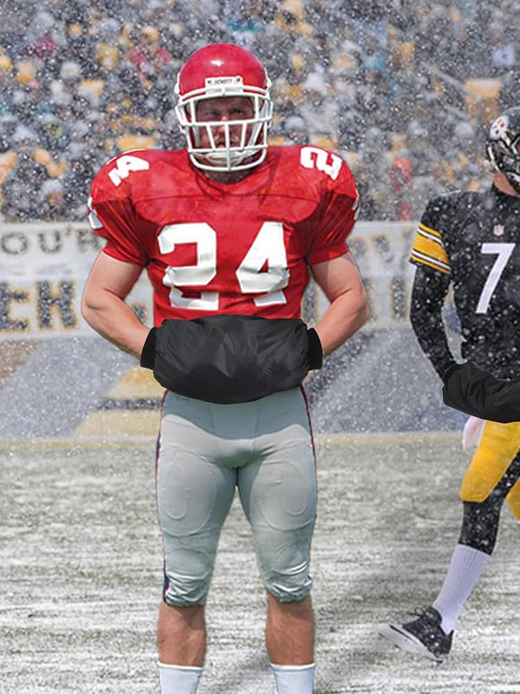 🔥Football Hand Warmer Pouch: This black hand muff is designed to provide superior hand warmth for football players. Whether on the field or on a cold training day, it ensures your hands stay warm to help you compete at your best.