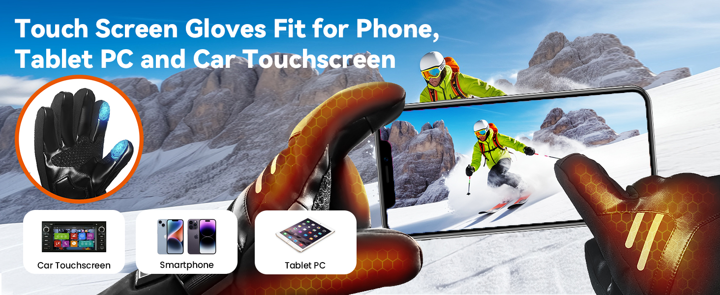 【Anti-slip and Touchscreen】The heated gloves for men women rechargeable use conductive PU on the thumb and index finger, can touch and operate the phone, tablet PC, car screen without taking off the gloves. Allowing you to freely use your phone in winter. The palm of the heating glove has a non-slip material, wear-resistance and non-slip effect, and provides powerful grip function.