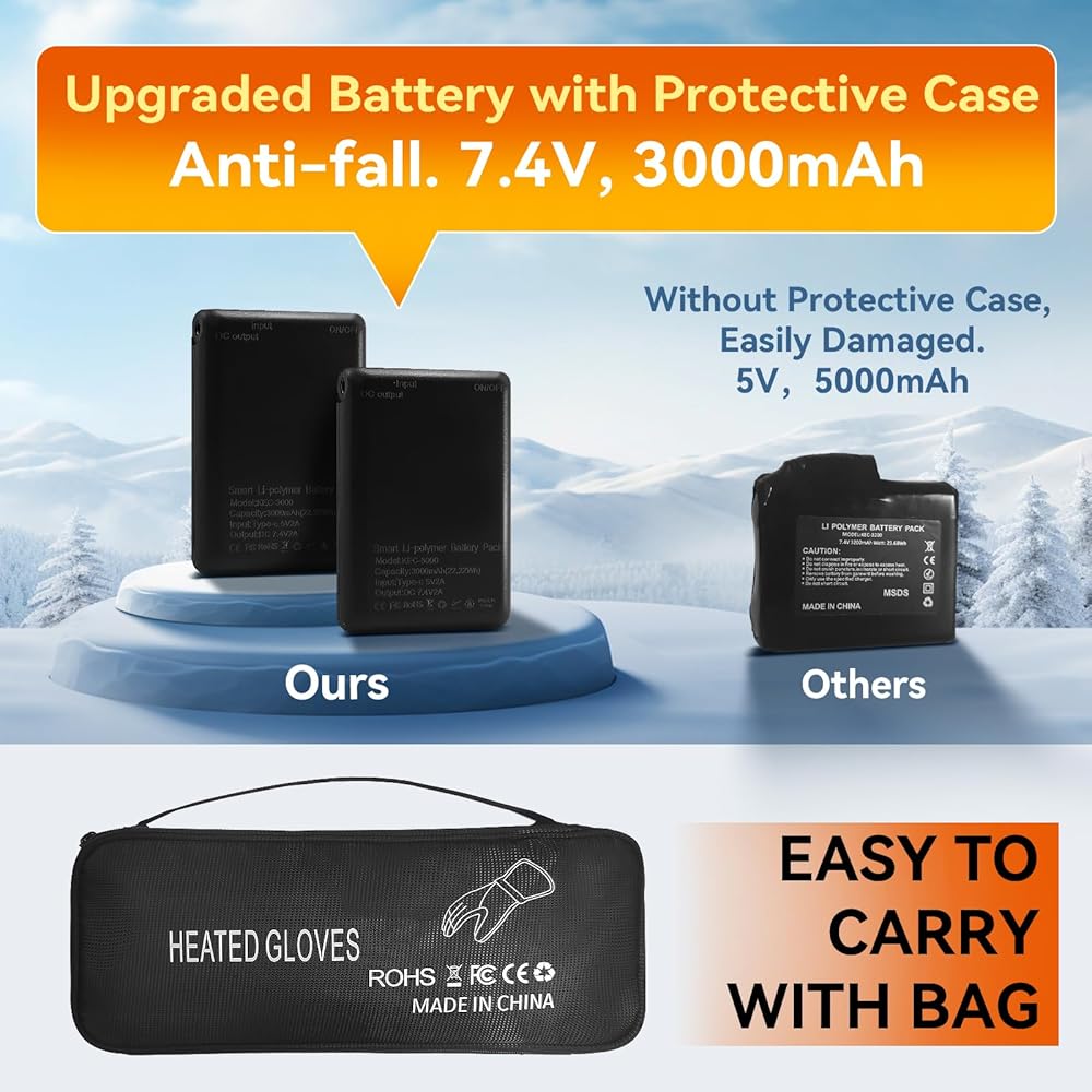 【Widely Used for Outdoor Sports】The heated gloves can be used for any situation and environment in cold weather, like hunting, skiing, snowboarding, cycling, hiking, fishing, bicycling, mountaineering, and so on. They are gift for yourself, your lover, friends, parents, and elders. Let them enjoy the Winter Movement.