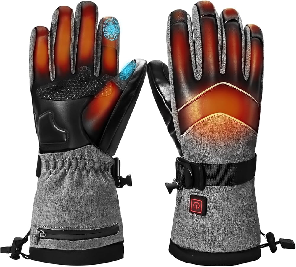 Omobolanle Heated Gloves for Men Women with 7.4V Rechargeable Battery,Waterproof Touchscreen Heating Work Gloves,Electric Winter Glove for Motorcycle Hunting Skiing Fishing Hiking