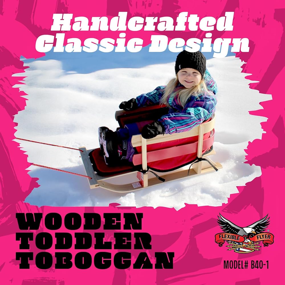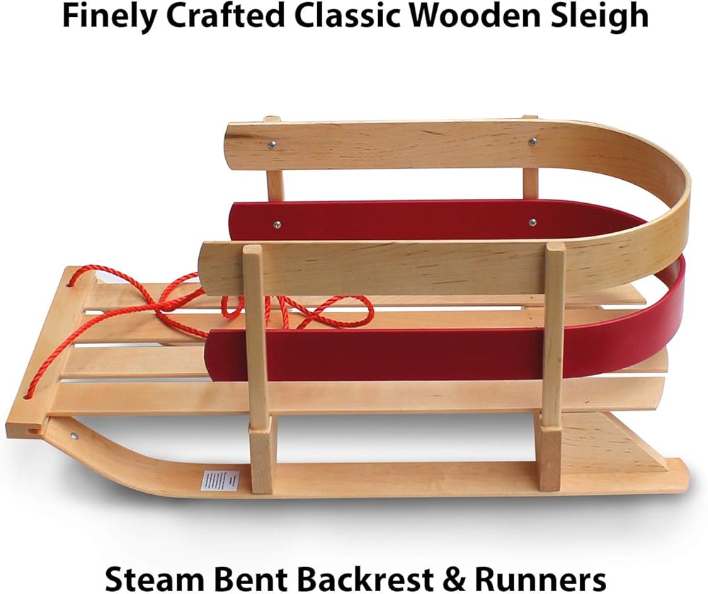 Hardwood – this kids sleigh is handcrafted from Northern hard rock Maple wood with steam bent backrest and runners. Toboggan for toddlers comes fully assembled