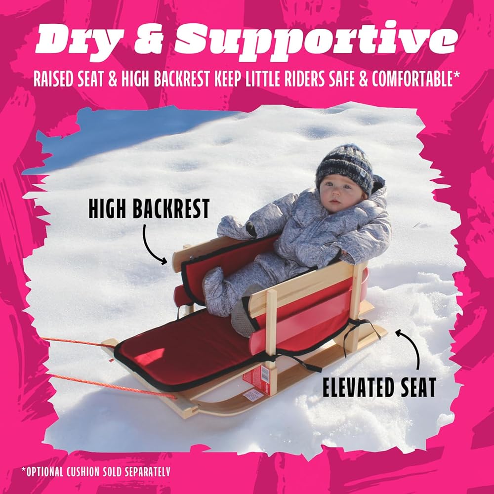 Dry & secure - elevated riding position keeps your child Dry. This Baby sled's high double-slat backrest is great for kids who need extra support sitting