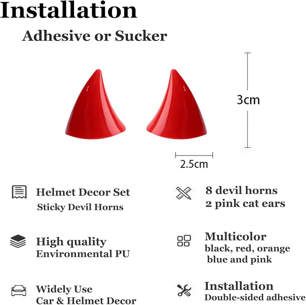 Widely Use - our small stick on devil horns has many applications,not only as a helmet accessory for motorcycle helmet, bike helmet,Snowboard,ski helmet,but also can decorate your door,bedroom,desk or canbinet,etc