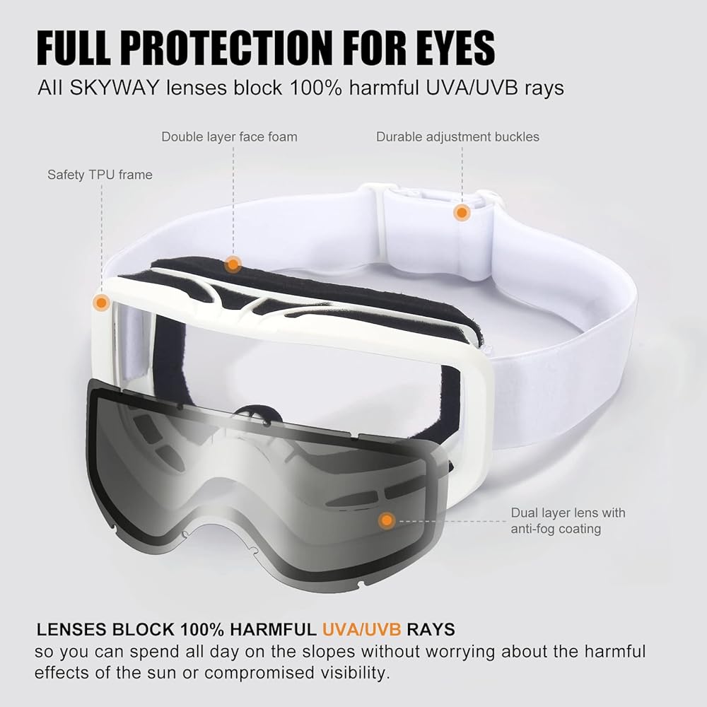 【ANTI-FOG LENS & EXCELLENT OPTICAL CLARITY】Dual-layer lens technology with anti-fog coated inner lens gives you a fog-free ski experience.