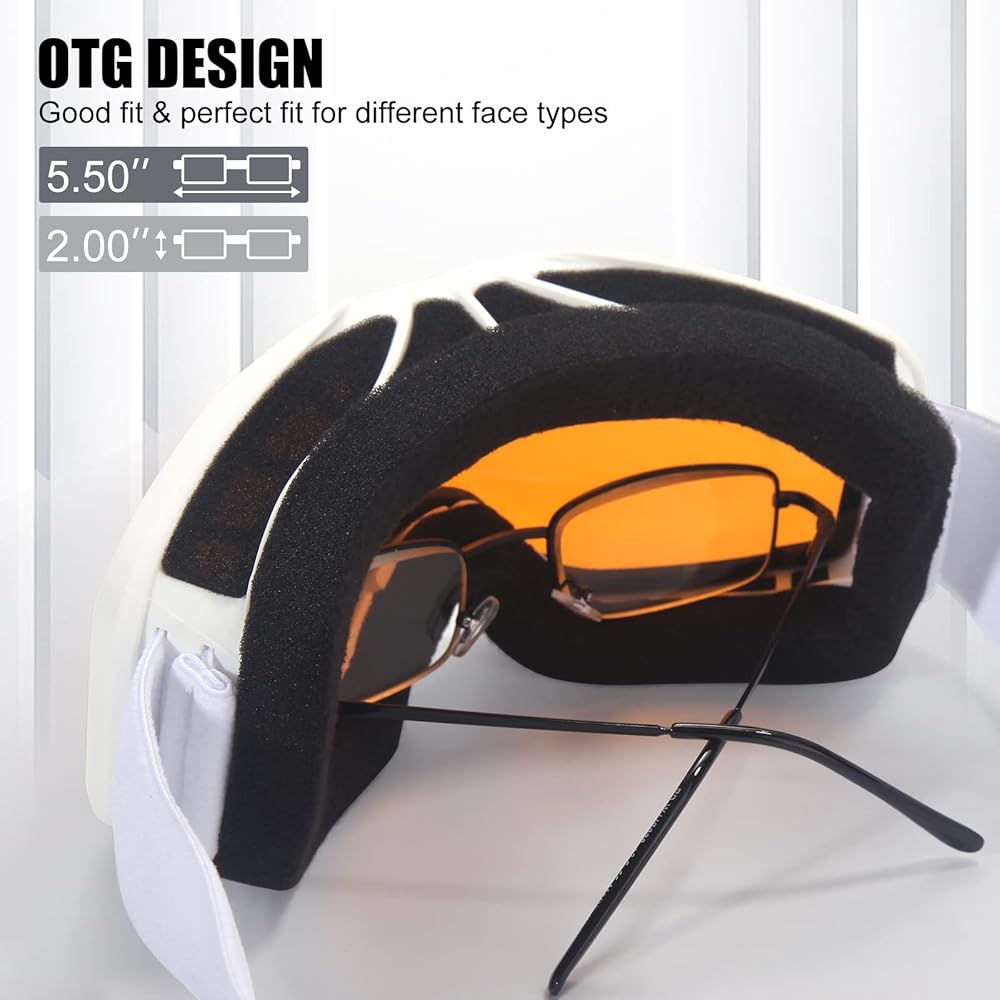 【OTG (OVER-THE-GLASSES) DESIGN】 Ski goggles that fits over glasses. Suitable for both ADULTS AND YOUTH.