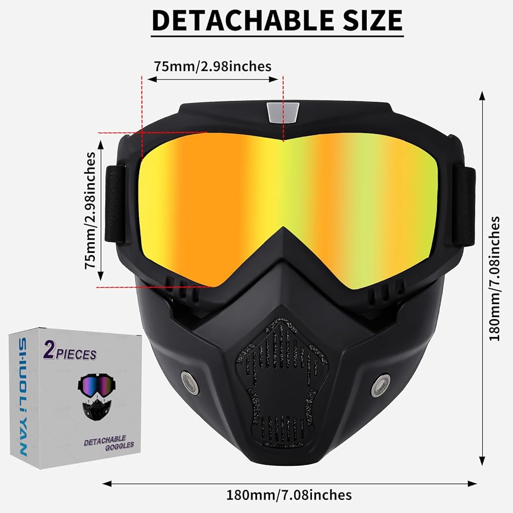 🏍️MULTIPLE APPLICATION SCENARIOS — The detachable goggles have a wide range of application scenarios, suitable for off-road, motorcycles, motocross, riding, skiing, snowboarding, airsoft, paintball, racing, etc. It is also suitable for all ages, men, women, children, and teenagers. It is the basic equipment for outdoor sports. We also provide a 180 days warranty for it, please feel free to buy it.