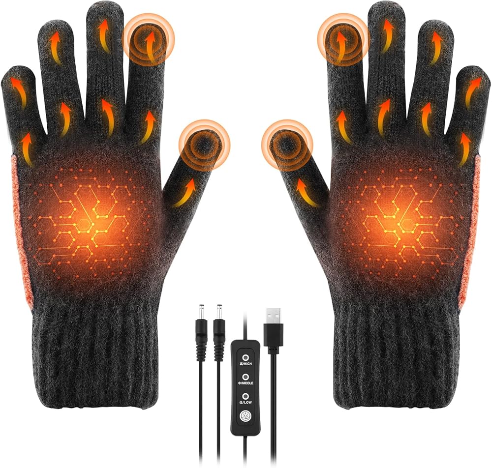 【Adjustable Temperature】- Upgrade double-sided heating design, with a heating pad on hand front and back to keep your hands back warm. Adjustable temperature of heating pad in 3 levels, High: About 47~55°C; Middle: About 43~47°C; Low: About 40~45°C, which is the most comfortable range for human body, without making you feel dry or hot, and brings no effect for your hands movement.