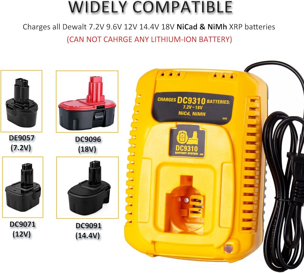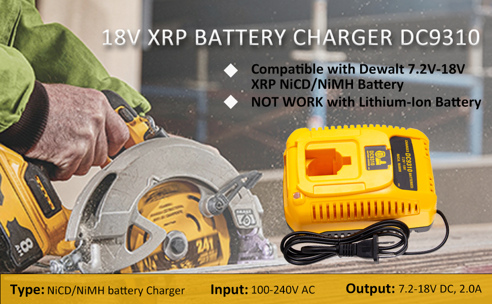 【COMPATIBILITY】The Dewalt 18v battery charger can charge all Dewalt 7.2V 9.6V 12V 14.4V 18V NiCad & NiMh XRP batteries (NOT for Lithium-ion Battery). So users need only one charger for multiple cordless products
