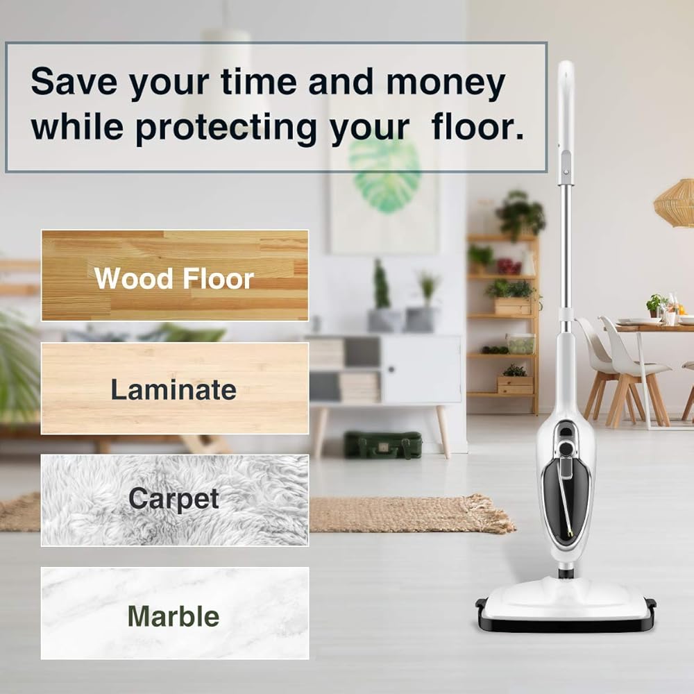 ★【15 Secs Heat Up Fast & Adjustable steam】Steam cleaner heating up in 15-18 seconds, makes it quicker to have hot steam ready for various floor cleaning. With an adjustable steam button, the steamer provides you with a fresher, cleaner, and more comfortable living room.