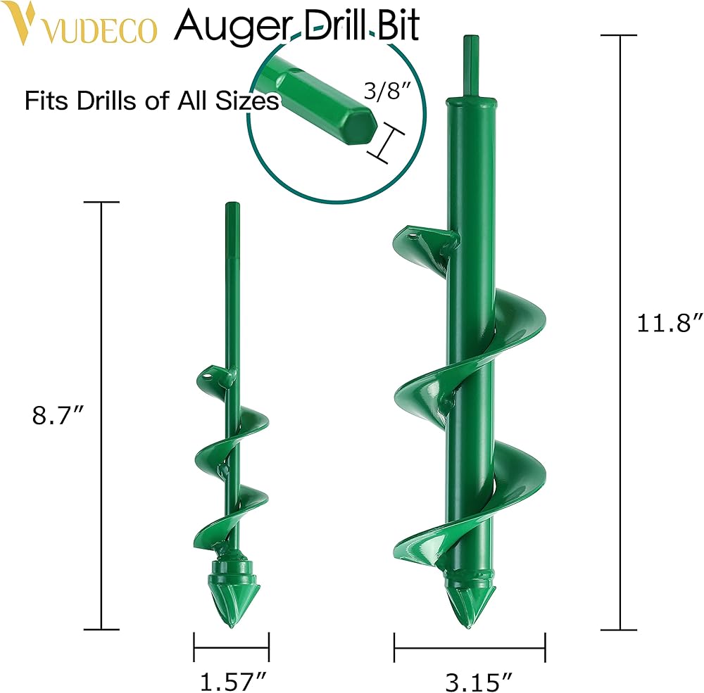 ◆High Quality - Made of SPHC with a glossy green painted finish, quite sturdy and durable. Suitable for Soft soil. It is perfect for digging holes in a short amount of time. The size of our two drill augers is 11.8"x3.15" and 8.7"x1.57".