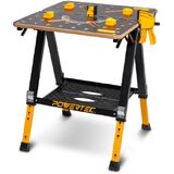 Introducing the Deluxe Rolling Miter Saw Stand by POWERTEC. This heavy duty stand was designed to provide you with seamless mobile integration with your miter saws and bench-top tools. Featuring a compact size and heavy duty construction, our miter saw stand was made for optimal convenience and work efficiency for the professional or DIY enthusiast. Heavy Duty Construction – Made with anodized aluminum for anti-corrosive and scratch resistant properties, long-term durability, and flaunts a 330 lbs maximum weight capacity to support your benchtop power-tools. Snap-In Tool Organizer Trays – Positioned along the metal screen (below the rails) to help eliminate the need of having to place your tools, screws, and accessories at an inconvenient (out-of-reach) location. Spring-Loaded Locking Legs – Allows you to quickly set up or collapse the foldable miter saw stand, without complication. Steel Sawdust Screen – Permits dust to drop down and through the netting to avoid debris build-up. Rolling Mobility – Equipped with (two) 6.75 inch super grip rubber wheels that deliver optimal traction that won't bog down into the soil. Compact Portability – Possesses a manageable 35lb weight and collapsible design that allows you to efficiently store this cost effective unit at home or take it with you on the road. Universal Compatibility – Utilizing quick release adjustable mounting brackets, our miter saw stand accepts most 10” and 12” miter saws from all of the major brands.