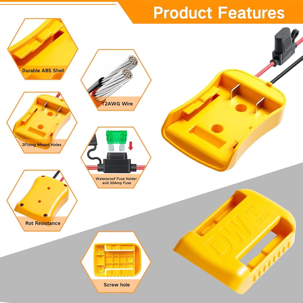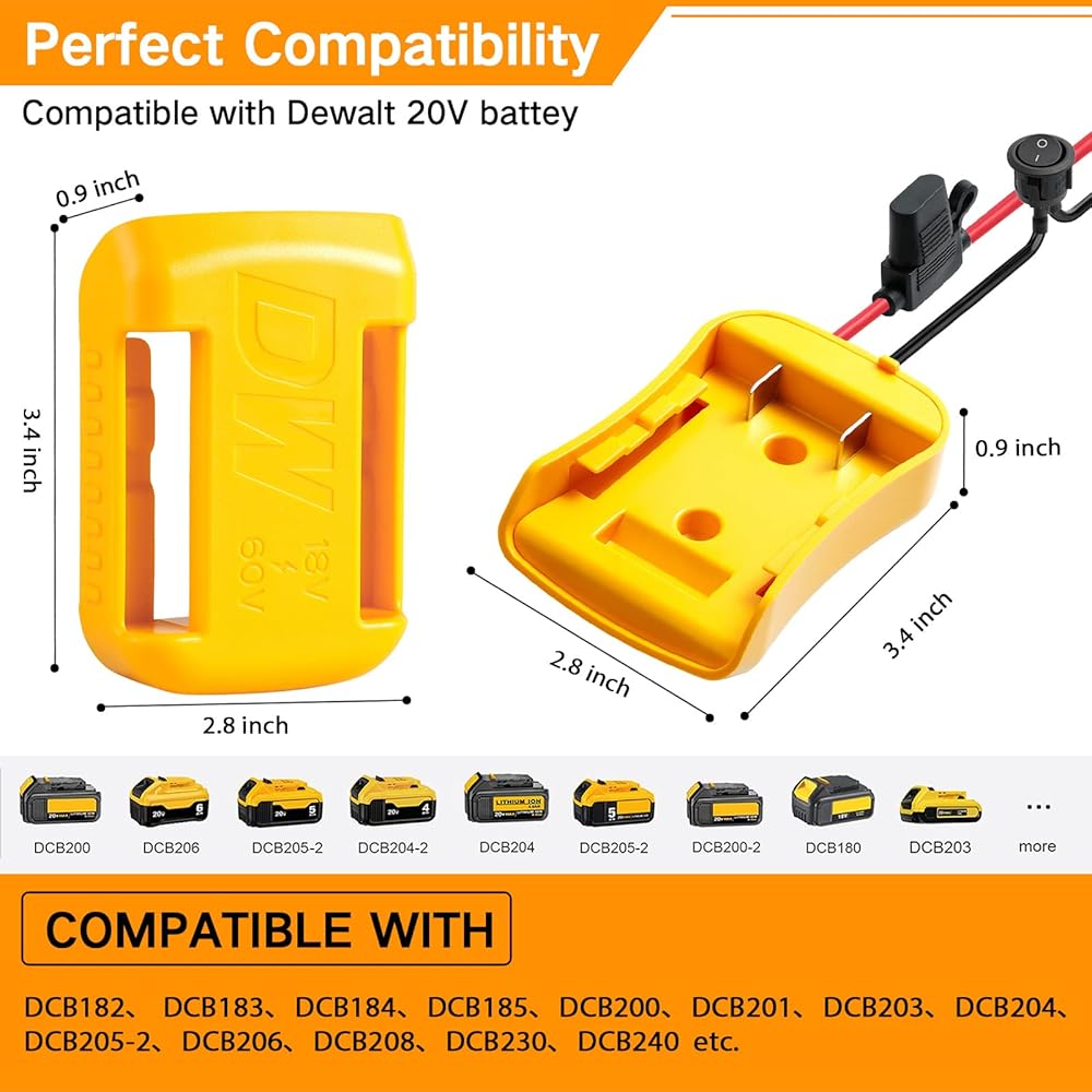 💝SAFETY & MULTI-FUNCTION:To ensure the safety of product usage,this product has incorporated some safety designs such as the 30A fuse which can protect the device from damage caused by overcurrent,the 0/1 switch which can easily control the power supply,and the fuse which provides overload protection.In addition,the thicker copper contact enhances conductivity and safety.It is compatible with Dewalt 20V batteries series,providing more possibilities for your battery usage,allowing you to enjoy the fun of DIY and make your tools more flexible and versatile.