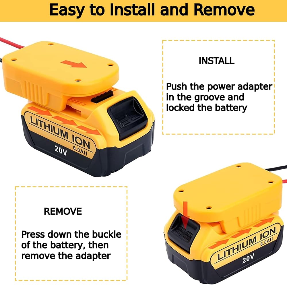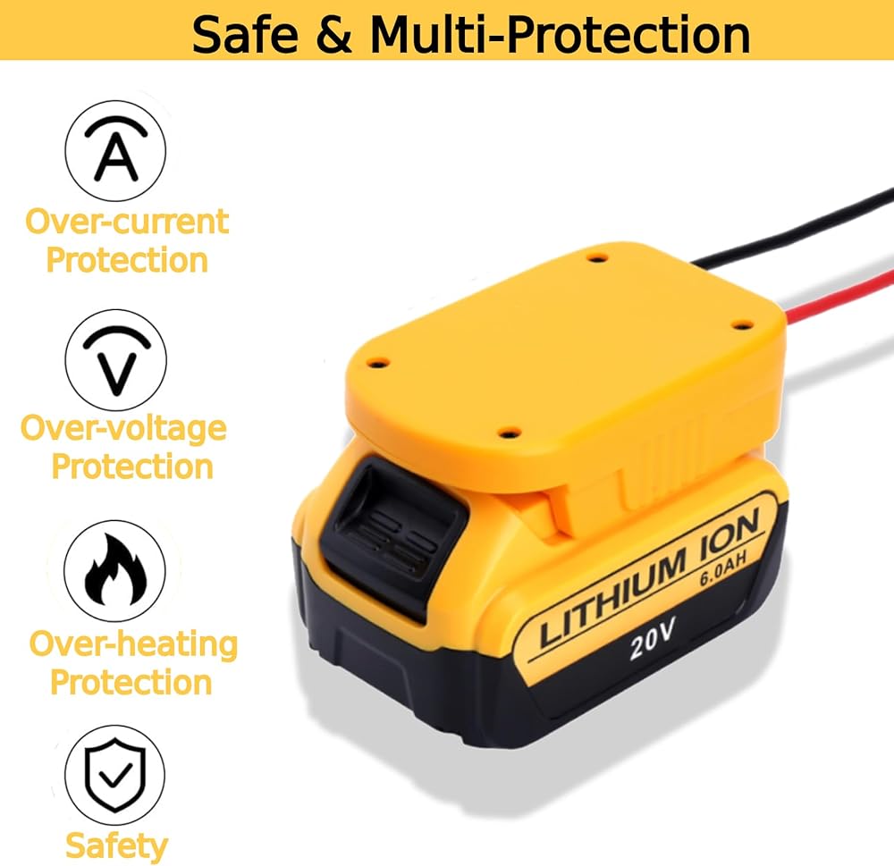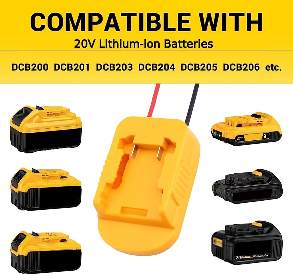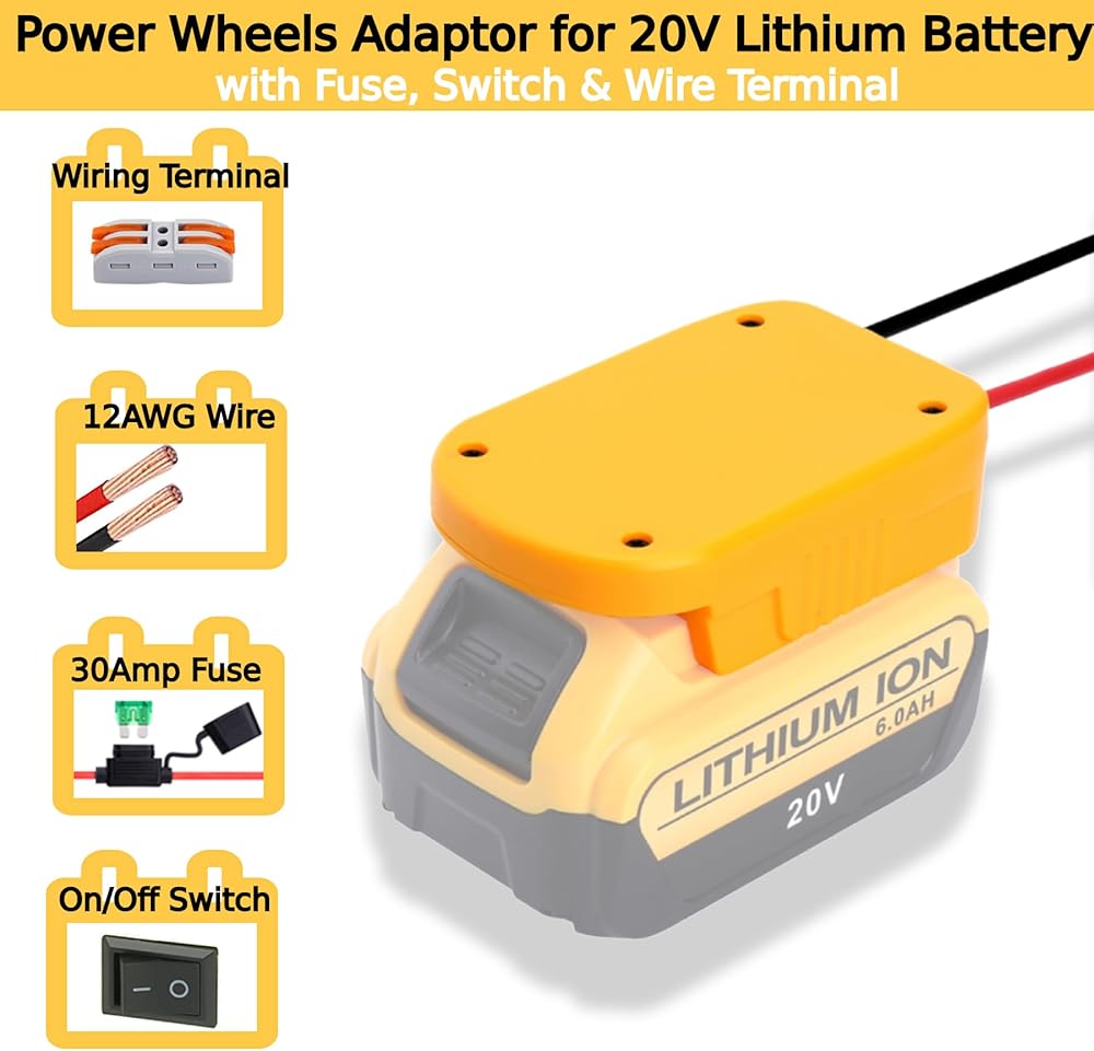【PERFECTLY COMPATIBLE】This power wheel adapter is compatible with Dewalt 20V series lithium-ion batteries, such as DCB200 DCB201 DCB203 DCB205 DCB206,etc. It snugly fits your battery.